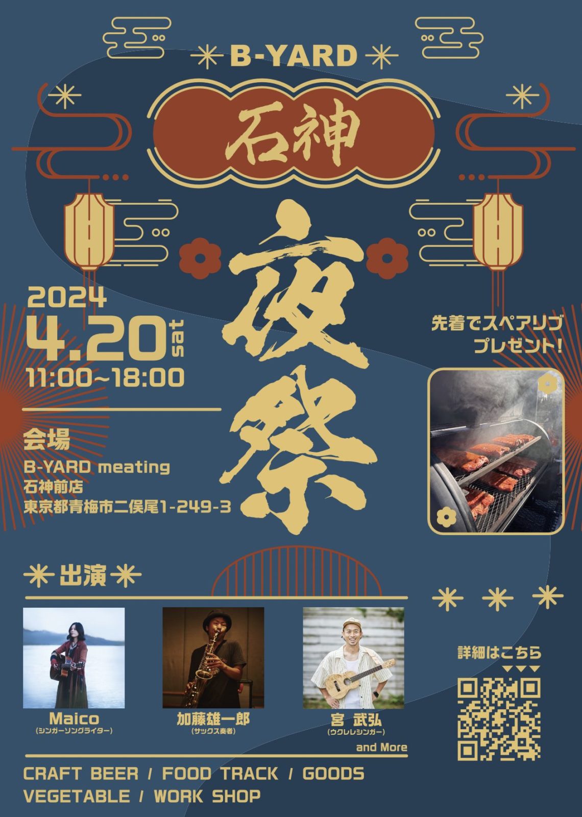一月に続いて、青梅のBBQ施設、B-YARDのイベントに出演させていただきます(感謝!)